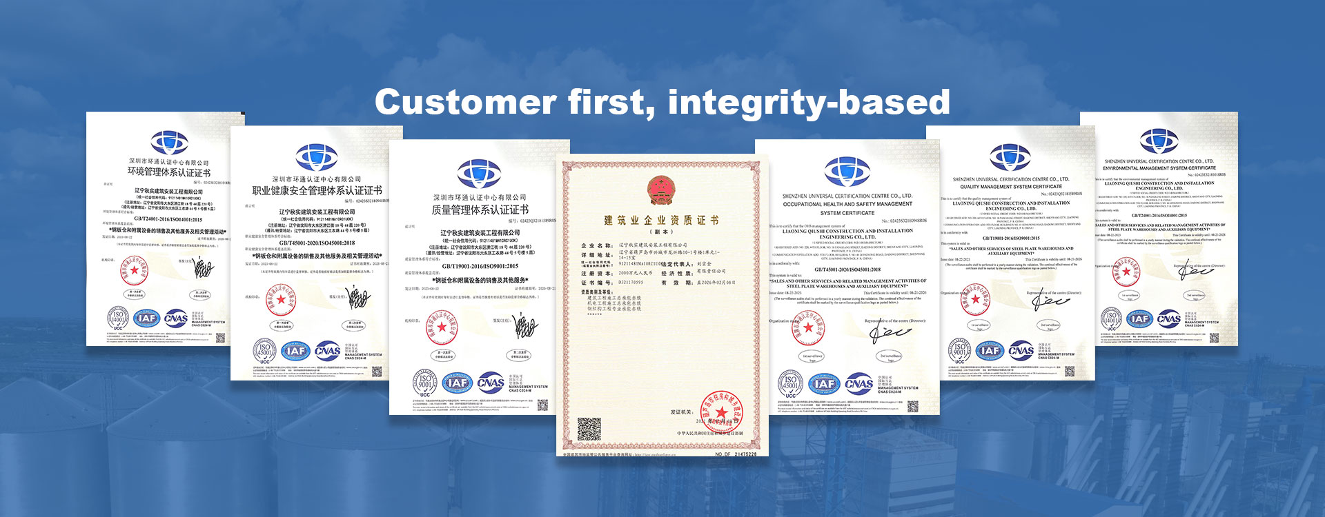 Công ty TNHH Kỹ thuật Thiết bị Silo Liaoning Qiushi có trụ sở tại Thẩm Dương, thủ phủ công nghiệp nặng của Trung Quốc. Kể từ khi người sáng lập của chúng tôi bước vào ngành công nghiệp silo thép cách đây 40 năm, chúng tôi đã liên tục đổi mới và thích ứng với nhu cầu thị trường. Ngày nay, công ty chúng tôi đã trở thành một doanh nghiệp toàn diện tích hợp R&D, thiết kế, sản xuất, lắp đặt và dịch vụ sau bán hàng cho silo thép. Chúng tôi chuyên cung cấp các giải pháp lưu trữ theo yêu cầu trên toàn thế giới, thiết kế và xây dựng các silo thép quy mô lớn và các dự án hỗ trợ, bao gồm kết cấu thép, tháp sấy, thiết bị phụ trợ và hệ thống điện dựa trên các điều kiện cụ thể của địa điểm. Sứ mệnh của chúng tôi là cung cấp các dự án silo thép quy mô lớn chất lượng cao nhất cho khách hàng trên toàn cầu. Công ty sở hữu một hệ thống hoàn thiện để xây dựng silo thép, bao gồm các thiết bị chuyên dụng để sản xuất, lắp đặt, kiểm tra và gia công kết cấu thép. Hiện tại, chúng tôi có 260 nhân viên, bao gồm 5 kỹ sư xây dựng được chứng nhận hạng nhất, 10 kỹ sư xây dựng được chứng nhận hạng nhì, 5 kỹ sư cao cấp, 10 kỹ sư trung cấp, 30 kỹ thuật viên, 5 giám sát xây dựng có hơn 30 năm kinh nghiệm lắp đặt, 15 người có hơn 20 năm và 30 người có hơn 10 năm kinh nghiệm. Ngoài ra, chúng tôi có 100 công nhân sản xuất xưởng và 300 công nhân lắp đặt. Công ty chúng tôi có hệ thống kỹ thuật mạnh mẽ và đội ngũ dịch vụ chuyên nghiệp cao, cung cấp nhiều loại sản phẩm bao gồm silo thép đúc sẵn có sức chứa 5~15.000 tấn, silo thép xoắn ốc 100~5.000 tấn, tháp sấy 100~1.500 tấn và các thiết bị liên quan như vệ sinh, loại bỏ bụi, vận chuyển, sàn đổ thủy lực và máy vệ sinh. Chúng tôi có các chứng chỉ quốc gia về "Tổng thầu xây dựng", "Tổng thầu cơ điện" và "Tổng thầu chuyên nghiệp về kỹ thuật kết cấu thép". Là chuyên gia trong sản xuất và lắp đặt silo thép và các dự án liên quan, chúng tôi có thể giải quyết mọi thách thức về thiết kế, sản xuất và lắp đặt mà khách hàng của chúng tôi có thể gặp phải. Trong nhiều thập kỷ, chúng tôi đã xây dựng hàng nghìn silo thép với nhiều thông số kỹ thuật khác nhau cho hàng trăm doanh nghiệp, cả trong nước và quốc tế, với các cơ sở lắp đặt trên khắp Trung Quốc, Châu Á, Châu Âu và Châu Phi. Các silo thép của chúng tôi được sử dụng rộng rãi trong nhiều ngành công nghiệp khác nhau, chẳng hạn như thức ăn chăn nuôi, ngũ cốc, cảng, bia, dầu, chế biến rượu và sản xuất nông nghiệp, và đã đạt được danh tiếng tuyệt vời và hình ảnh công ty trong ngành. Công ty chúng tôi duy trì các nguyên tắc chất lượng là trên hết, khách hàng là trên hết và tính chính trực là trên hết, phấn đấu cung cấp các sản phẩm vượt trội và dịch vụ thỏa đáng cho khách hàng trên toàn thế giới!